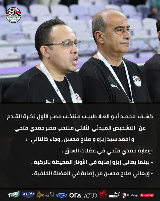 وفيما يخص المهاجم صلاح محسن، فقد أكد طبيب المنتخب أنه تعرض لإصابة في العضلة الخلفية، وهي إصابة عضلية معروفة تحتاج دائمًا لتدخل طبي سريع وبرنامج علاجي محدد لتفادي تفاقمها، مما يجعل مشاركته في المباراة المقبلة محل شك كبير حتى استكمال الفحوصات.