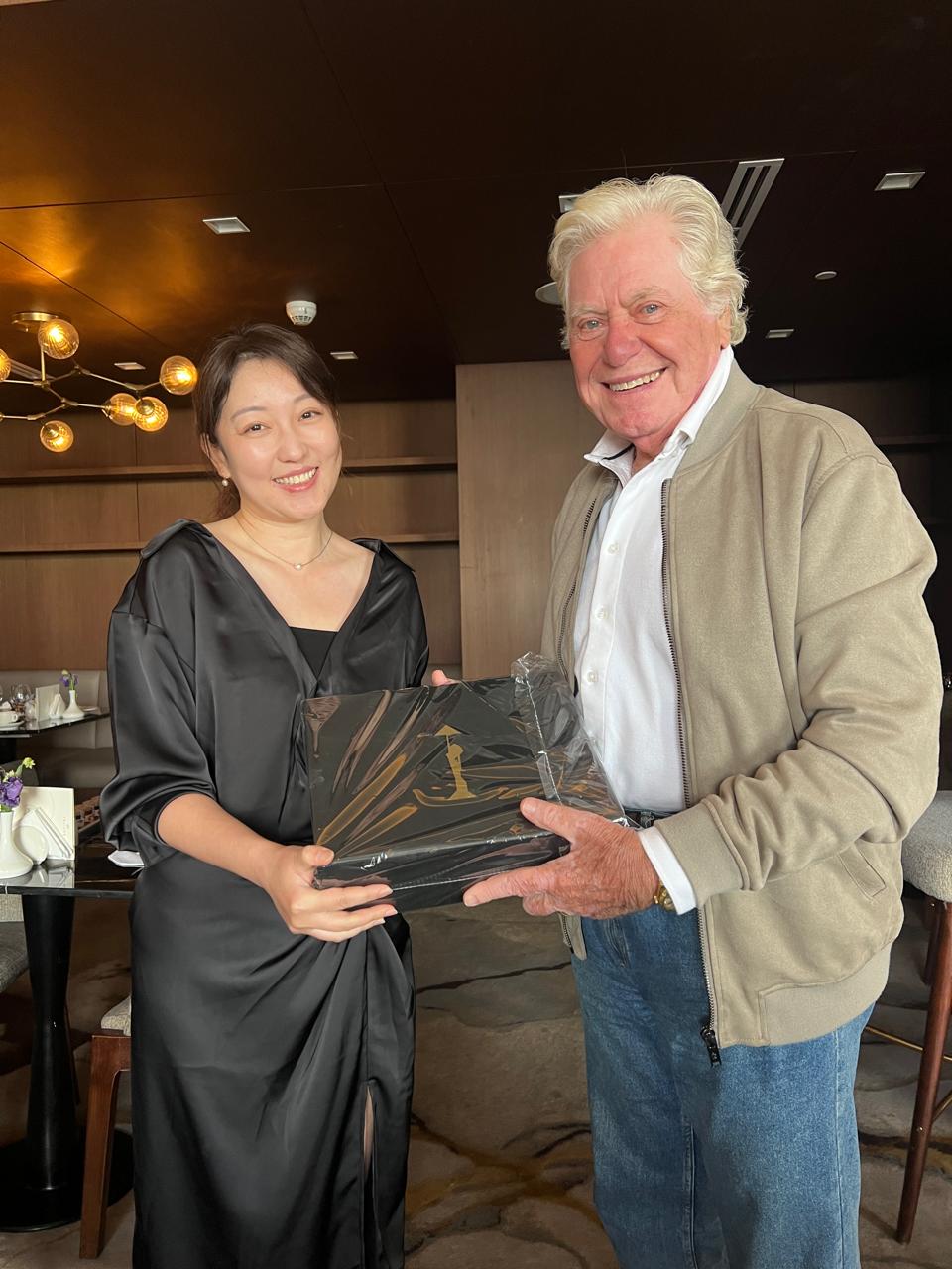 حسين فهمي يستقبل الوفد الصينى ويهديهم هدايا تذكارية من مهرجان القاهرة