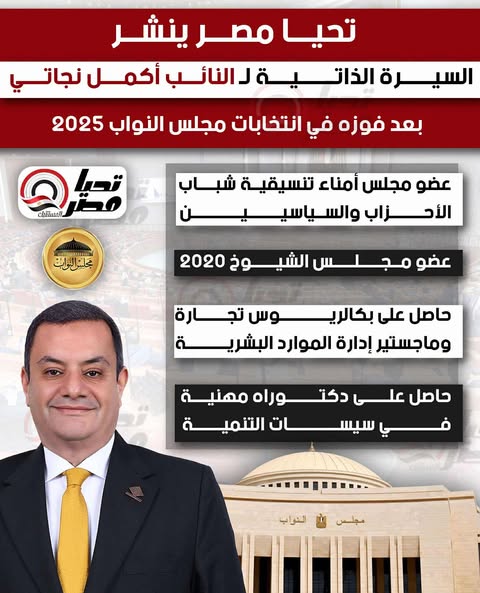 تحيا مصر ينشر السيرة الذاتية للنائب أكمل نجاتي بعد فوزه في انتخابات مجلس النواب 2025
