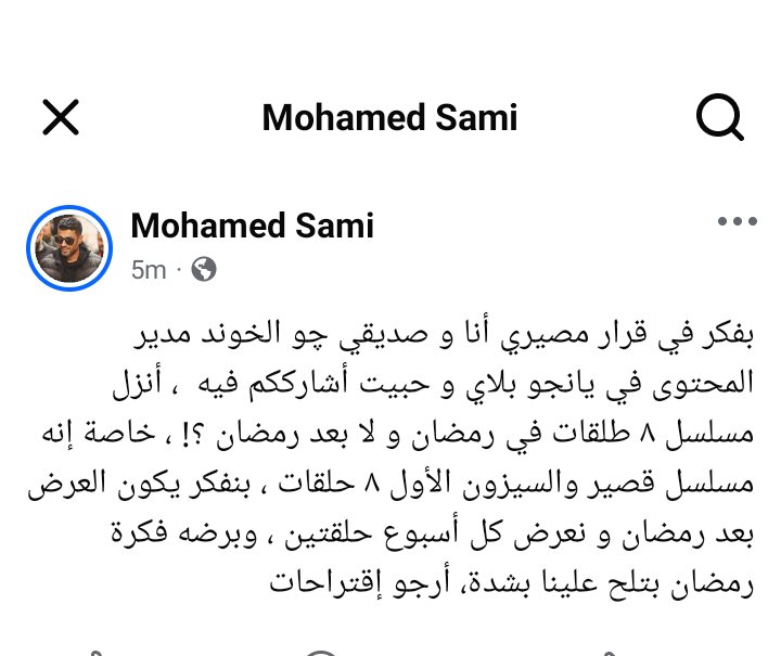 قرار مصيري.. محمد سامي يسأل الجمهور: أنزل مسلسل 8 طلقات في رمضان ولا بعده؟
