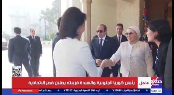 الرئيس السيسي وقرينته يستقبلان رئيس كوريا الجنوبية وقرينته