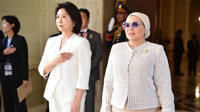 استقبل الرئيس عبد الفتاح السيسي وانتصار السيسي قرينة رئيس الجمهورية، اليوم، الرئيس "لي جاي ميونغ" رئيس جمهورية كوريا و قرينته.