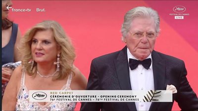 شهد افتتاح الدورة الـ 76 من مهرجان كان السينمائي الدولي حضور عدد كبير من نجوم الفن ومن بينهم الفنان المصري حسين فهمي وزوجته