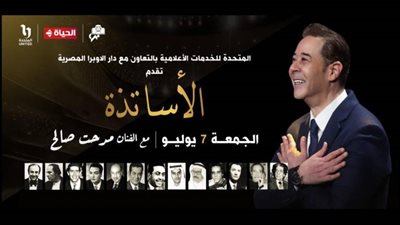 تعرض حفل الأساتذة لمدحت صالح عبر قناة الحياة والذي من المقرر أن يقام غدًا في الساعة الثامنة والنصف مساءً