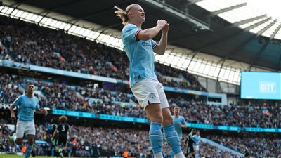 سجل الدولي النرويجي إيرلينج هالاند، مهاجم الفريق الكروي الأول بنادي مانشستر سيتي، الهدفين الثاني والثالث لصالح فريق مانشستر س