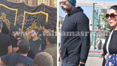 ساند نجل الفنانة ريهام عبد الغفور والدته خلال تشييع جثمان والدها الفنان أشرف عبد الغفور إلى مثواه الأخير