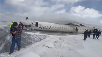 تحطم طائرة دلتا أثناء هبوطها في مطار تورونتو، وإصابة 8 أشخاص بجروح خطيرة، وسط تحقيقات لمعرفة أسباب الحادث