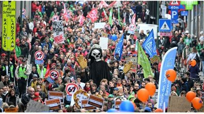 خرج المتظاهرون إلى شوارع بروكسل ، اليوم الثلاثاء، للمشاركة في إضراب وطني احتجاجا على إجراءات التقشف التي اقترحتها الحكومة البلجيكية، مما أدى إلى تعطيل حركة الطيران والنقل العام. وقاد الإضراب النقابات العمالية الرئيسية في البلاد، التي تعارض التغييرات المقترحة في القوانين التي تؤثر على المعاشات التقاعدية