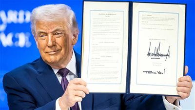 مازح الرئيس الأمريكي دونالد ترامب خلال مؤتمر صحفي على هامش المنتدى الاقتصادي العالمي في دافوس الرئيس عبد الفتاح السيسي