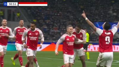 آرسنال يتقدم على إنتر ميلان بثنائية جابرييل خيسوس مقابل هدف في الشوط الأول من مباراة مثيرة بدوري أبطال أوروبا.