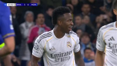 فينيسيوس جونيور يصنع الهدف الرابع لريال مدريد أمام موناكو بعد عرضية رائعة وخطأ دفاعي في الدقيقة 57 بدوري أبطال أوروبا.