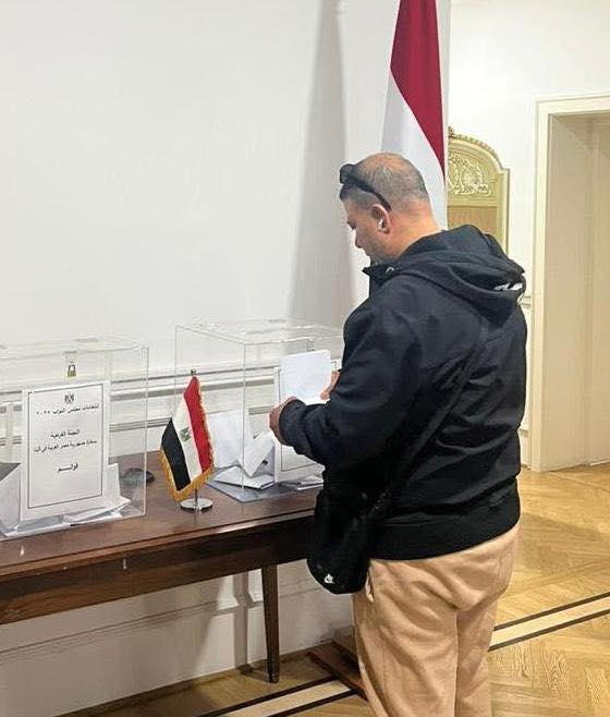ويبدأ الاقتراع بالخارج من الساعة التاسعة صباحاً، وحتى الساعة التاسعة مساءً وفقاً لتوقيت الدولة التى يجرى فيها الاقتراع على النحو المبين بقرار الهيئة الوطنية للانتخابات بشأن الجدول الإجرائى والزمنى لانتخابات مجلس النواب على أن يتخلله ساعة راحة يحددها رئيس اللجنة، بما لا يخل بضمان حسن سير العملية الانتخابية، وإذا وجد ناخبون فى جمعية الانتخاب - عند انتهاء الميعاد - لم يدلوا بأصواتهم يحرر رئيس اللجنة كشفاً بأسمائهم، وتستمر عملية الانتخاب حتى الانتهاء من إبداء آرائهم.