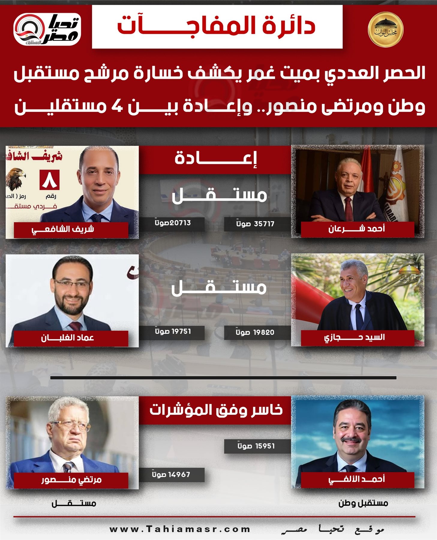 دائرة المفاجآت.. الحصر العددي بميت غمر يكشف خسارة مرشح مستقبل وطن ومرتضى منصور.. وإعادة بين 4 مستقلين