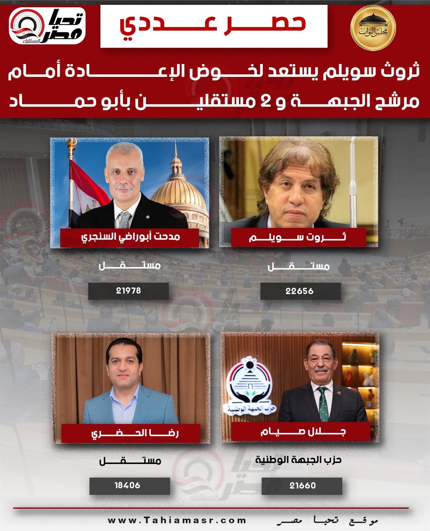 حصر عددي.. ثروث سويلم يستعد لخوض الإعادة أمام مرشح الجبهة و 2 مستقلين بأبو حماد