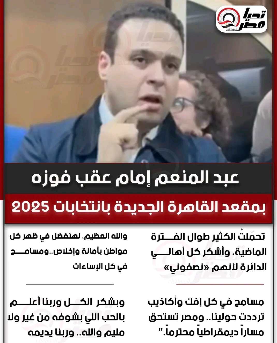 وفي قلب النتائج جاءت اسماء معروفة بثبات مواقفها المعارضة، لتقدم نموذجا عمليا على ان الطريق كان مفتوحا وان المنافسة كانت متكافئة. فقد نجح عبدالمنعم امام ممثل حزب العدل في دائرة القاهرة الجديدة، ليعود مرة اخرى الى البرلمان عبر مقعد فردي يعكس حجم الثقة الشعبية في خطابه النقدي للحكومة.