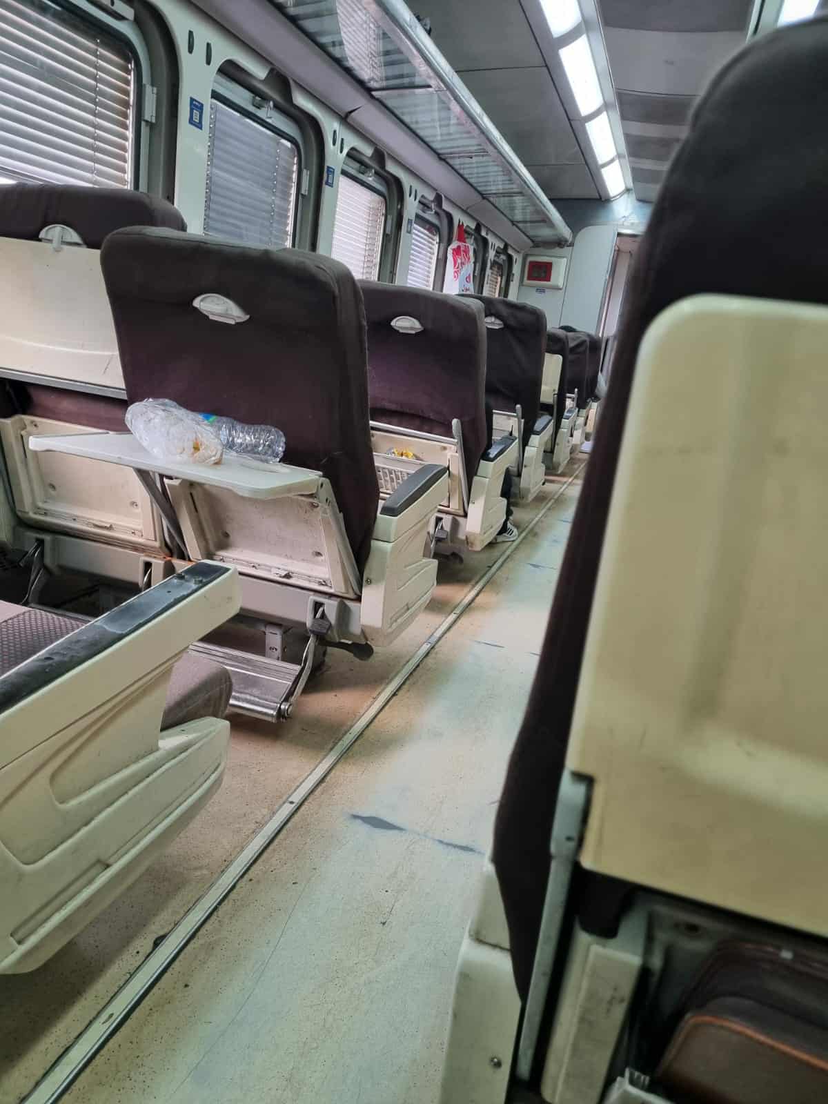 ومن المفترض أن يتم تنظيف القطار بعد كل رحلة ولكن لم يحدث هذا، تظهر عدد من الصور الاهمال الكبير قبل انطلاق الرحلة بدقائق، وهو ما أدى إلى استياء الركاب.