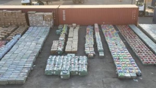 وعقب تقنين الإجراءات تنسيقا والجهات المعنية أمكن ضبطهما وأسفرت أعمال تفتيش الحاويتين عن ضبط أكثر من 186 ألف قطعة ألعاب نارية مختلفة الأحجام - 1400 جهاز اتصال لاسلكي – 4800 بطارية أجهزة اتصال - قرابة 2 مليون قرص لعقاقير طبية - 2800 قطعة غيار سيارات –9000 قطعة إسبراى منشط – 2400 جهاز صاعق كهربائي - 850 كاميرا لاسلكية صغيرة – أكثر من 121 ألف قطعة مستلزمات تجميل.