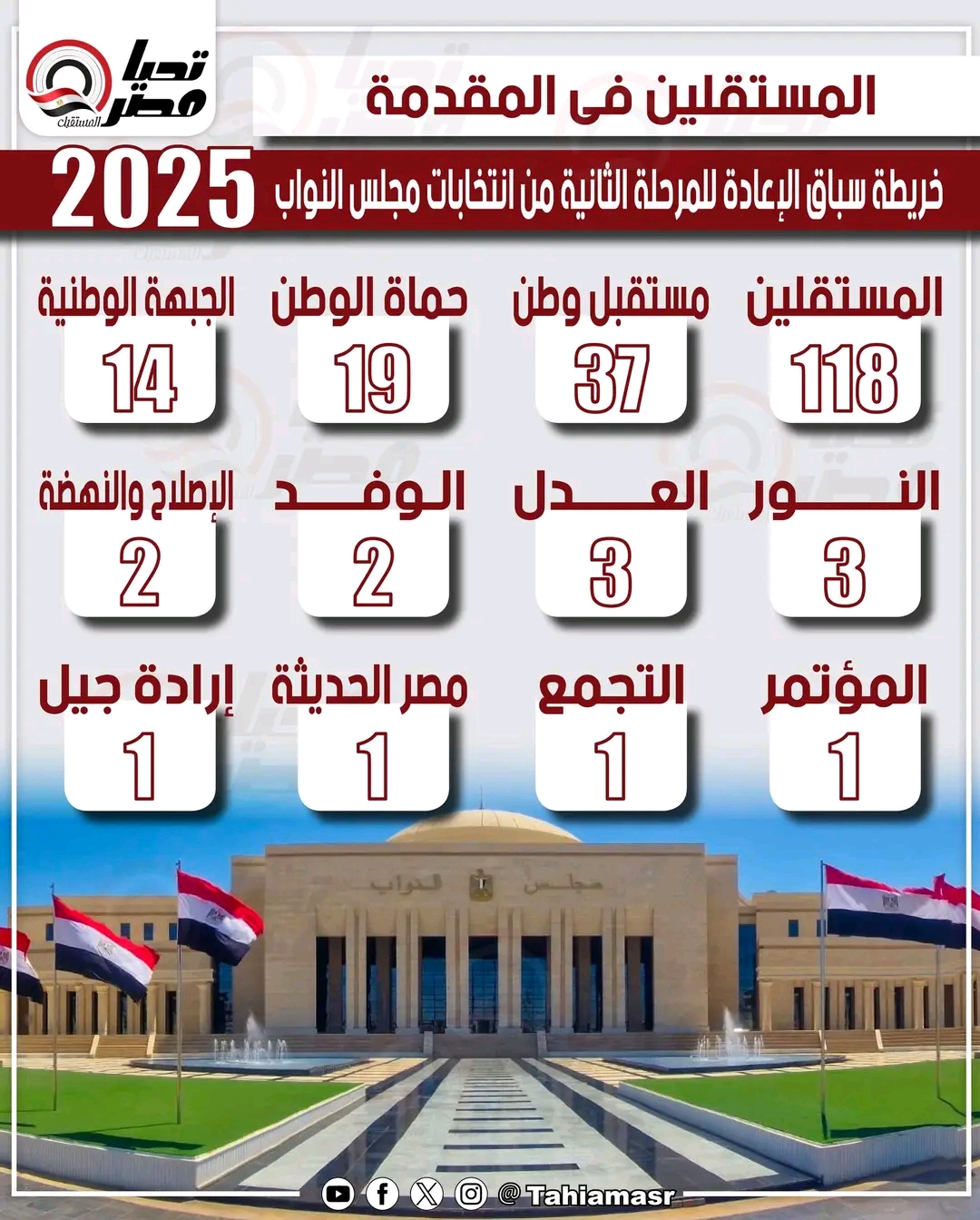 يأتي ذلك بعد إعلان الهيئة الوطنية للانتخابات نتيجة المرحلة الثانية من انتخابات مجلس النواب 2025 رسميا، والتي جاءت كالتالي: