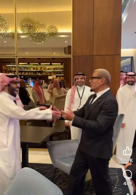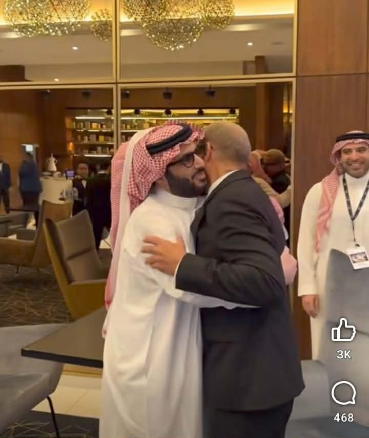 وقابل تركي آل الشيخ، الهضبة عمرو دياب مقابلة حارة، حيث أخذه بالاحضان ليبرز مدى حبه الشديد له وتقربه منه، وعلق على الفيديو قائلا وفقا لما رصده موقع تحيا مصر: "اللحاق بالاسطورة الحية"، ليبرز أهمية الهضبة في مصر والوطن العربي والعالم، وكيف يتم تقديره في جميع الدول العربية، وكيف أنه لديه مكانة خاصة ومميزة في الدول العربية.