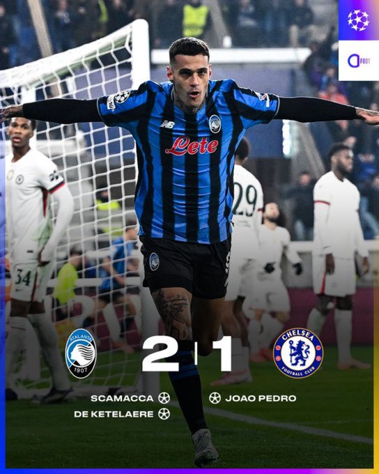 وانتهت مباراة تشيلسي وأتلانتا في دوري أبطال أوروبا في الجولة السادسة بفوز أتلانتا بهدفين مقابل هدف واحد.