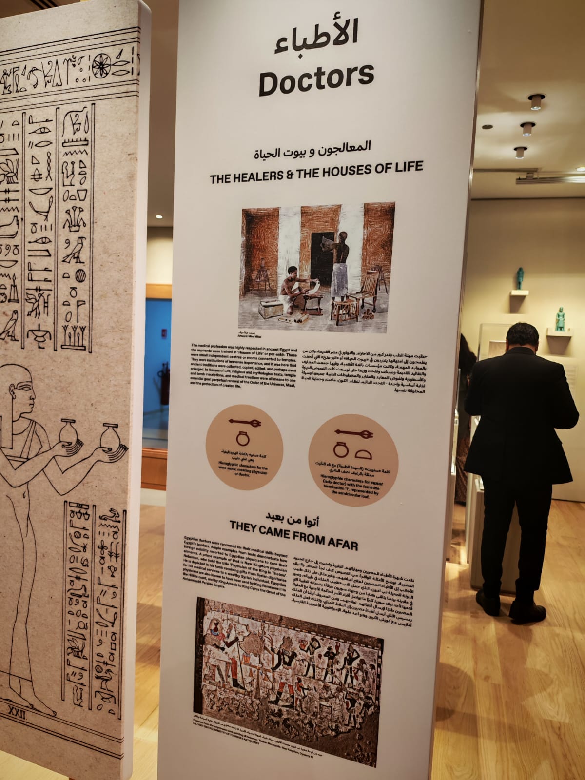 فيما قالت، ياسمين الضرغامي: "قاعة العرض تحكي قصة تخص كل المصريين، وتربط حاضرنا بتاريخ طويل من المعرفة، وتعيد أيضًا التأكيد على الدور المحوري الذي لعبته مصر في تشكيل الممارسات الطبية عبر العصور."