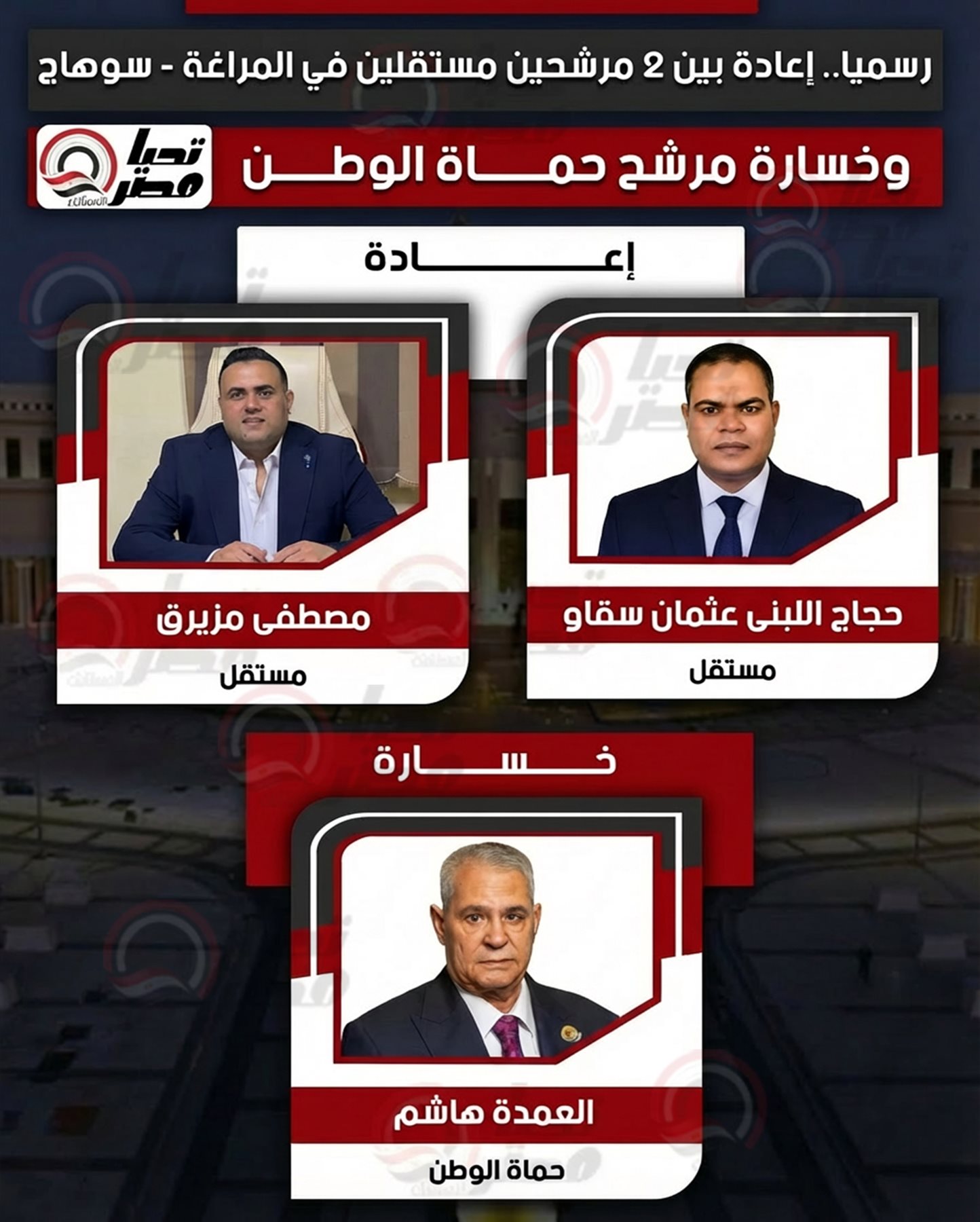 رسميا.. إعادة بين 2 مرشحين مستقلين في المراغة - سوهاج.. وخسارة مرشح حماة الوطن