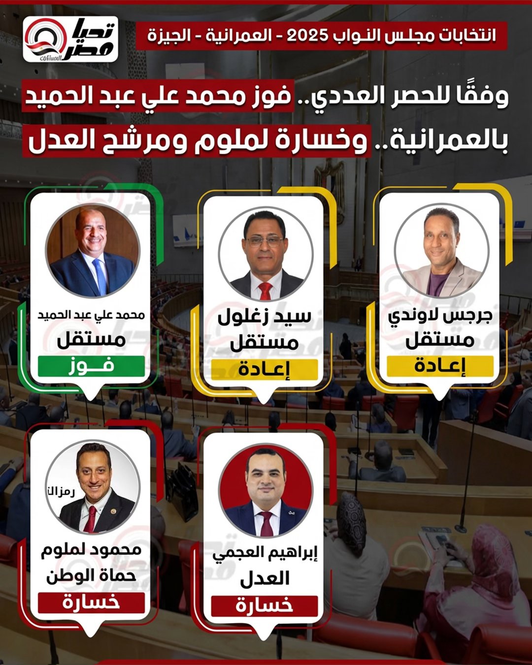 وفقًا للحصر العددي.. فوز محمد علي عبد الحميد بالعمرانية.. وخسارة لملوم ومرشح العدل