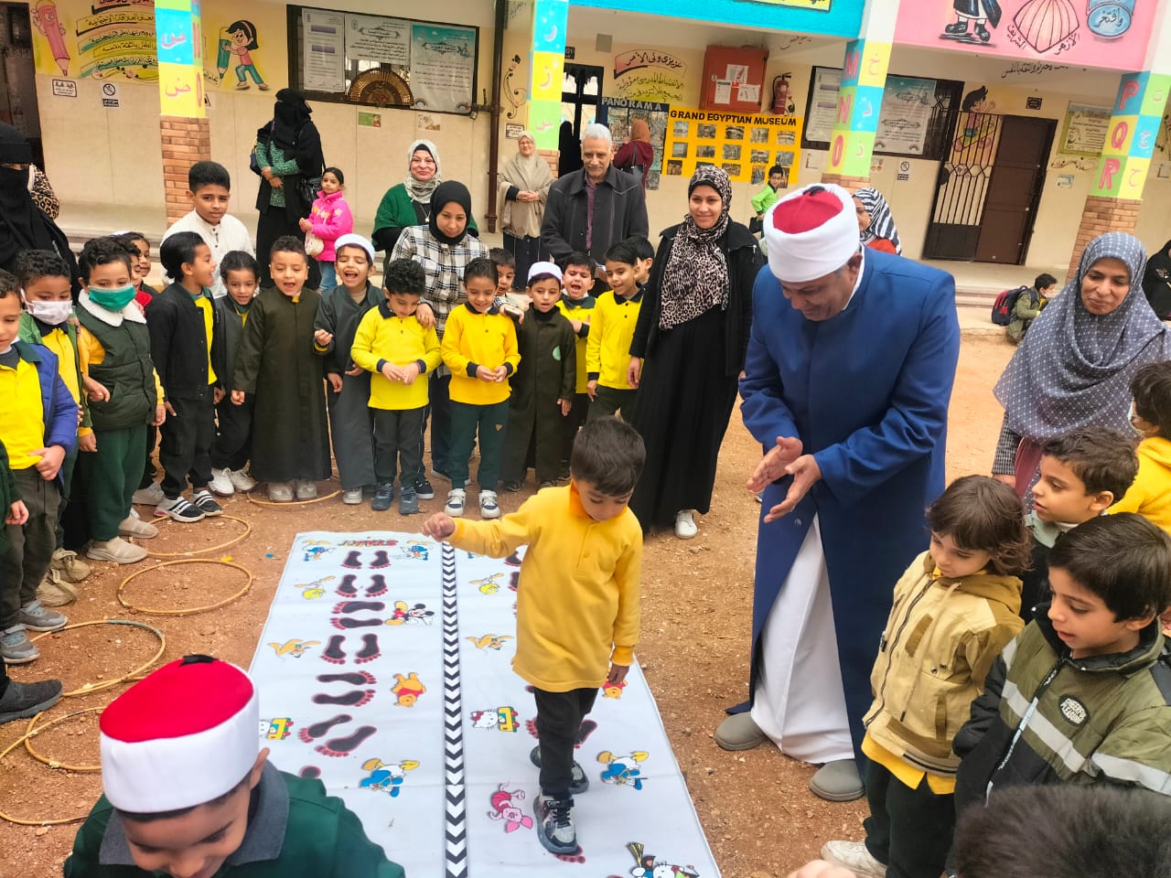 التعليم بالحب .. شيخ أزهري يشارك تلاميذ الروضة الأنشطة المدرسية داخل معهد بالشرقية