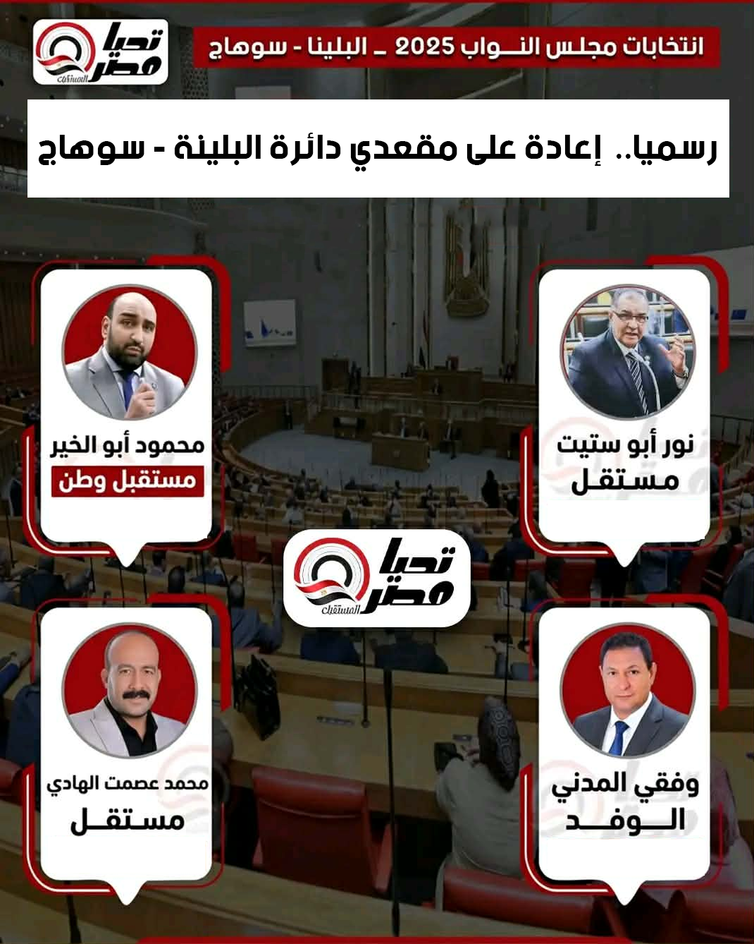 رسميا.. إعادة على مقعدي دائرة البلينا – سوهاج