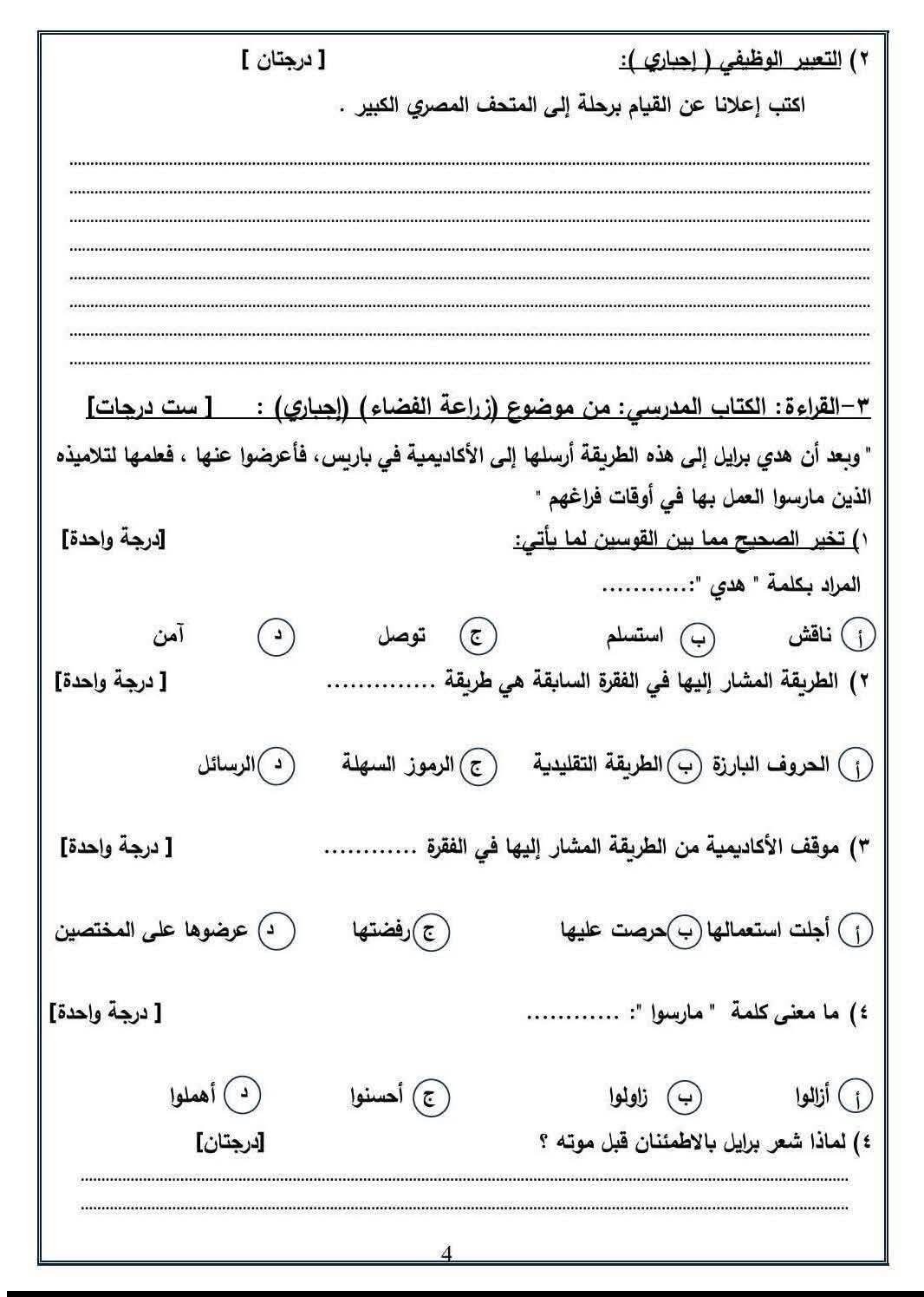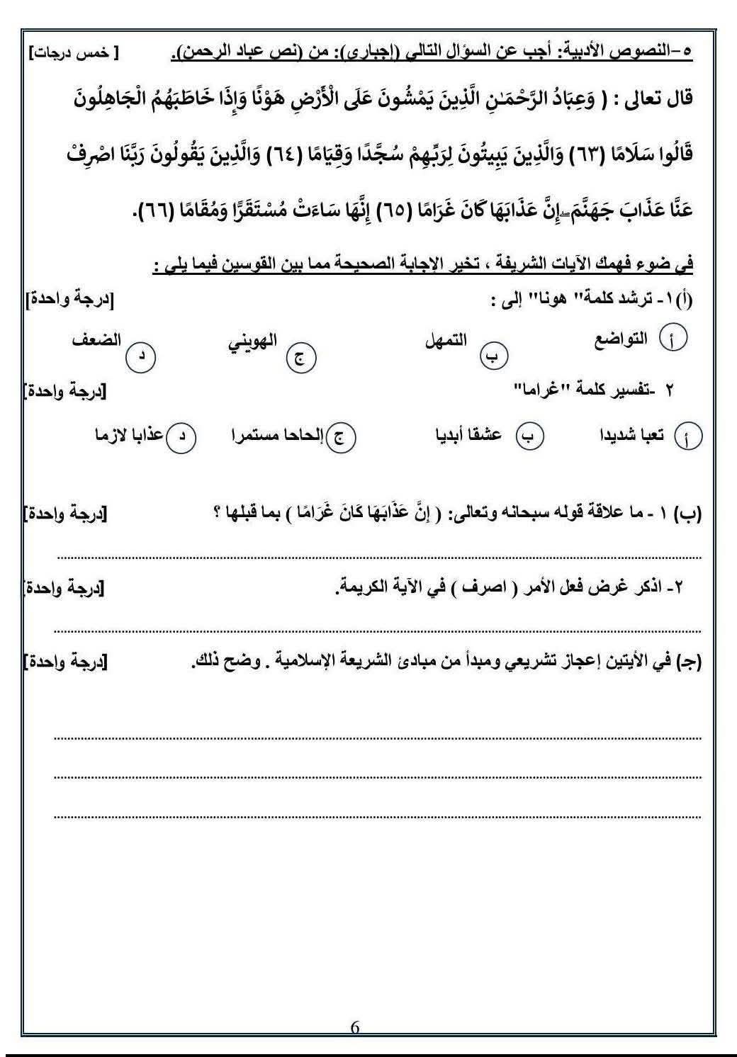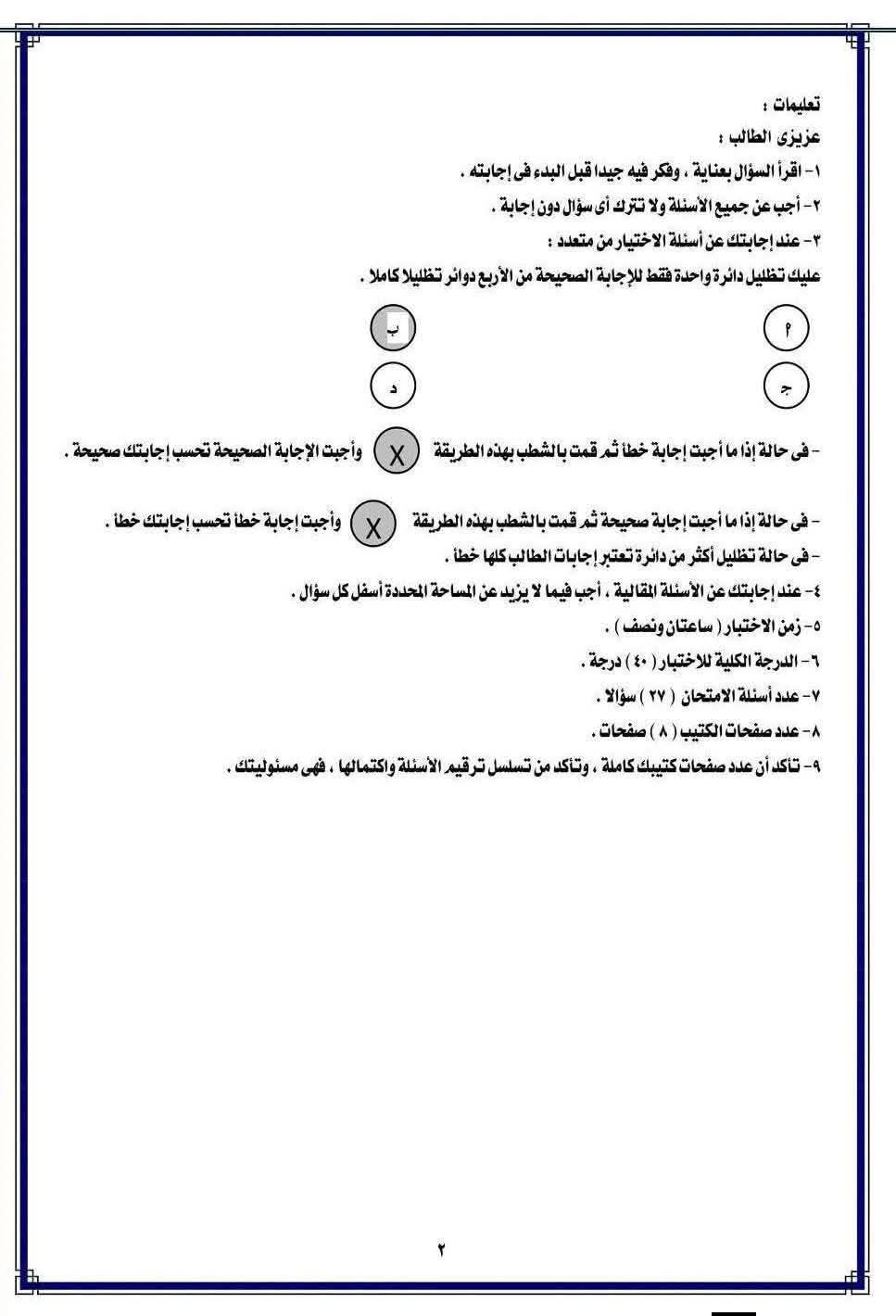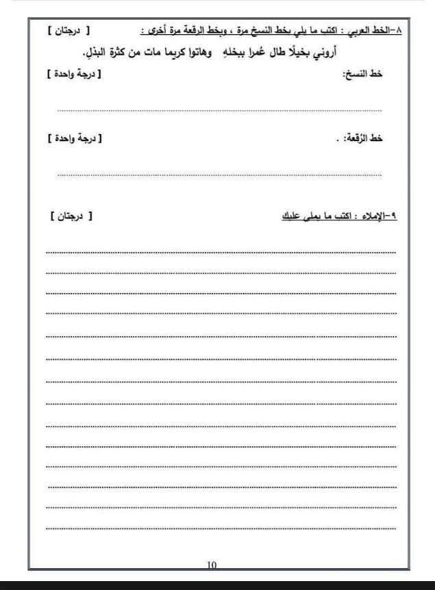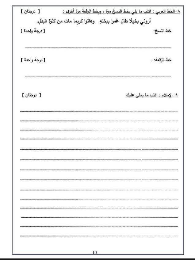 - نموذج امتحان اللغة العربية للصف الثالث الإعدادي 2026