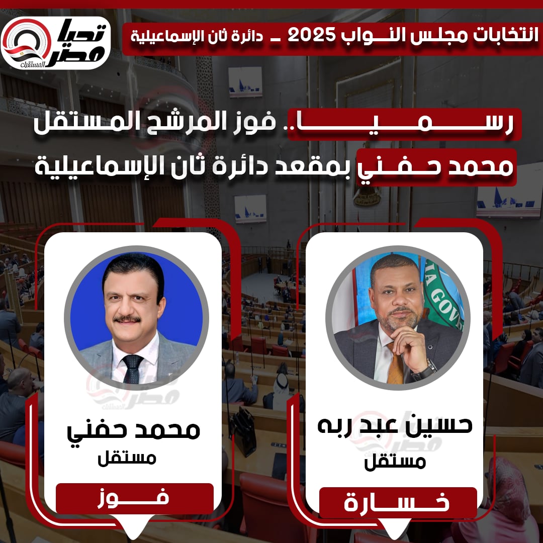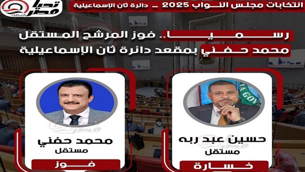 رسميا.. فوز المرشح المستقل محمد حنفي بمقعد دائرة ثان الإسماعيلية