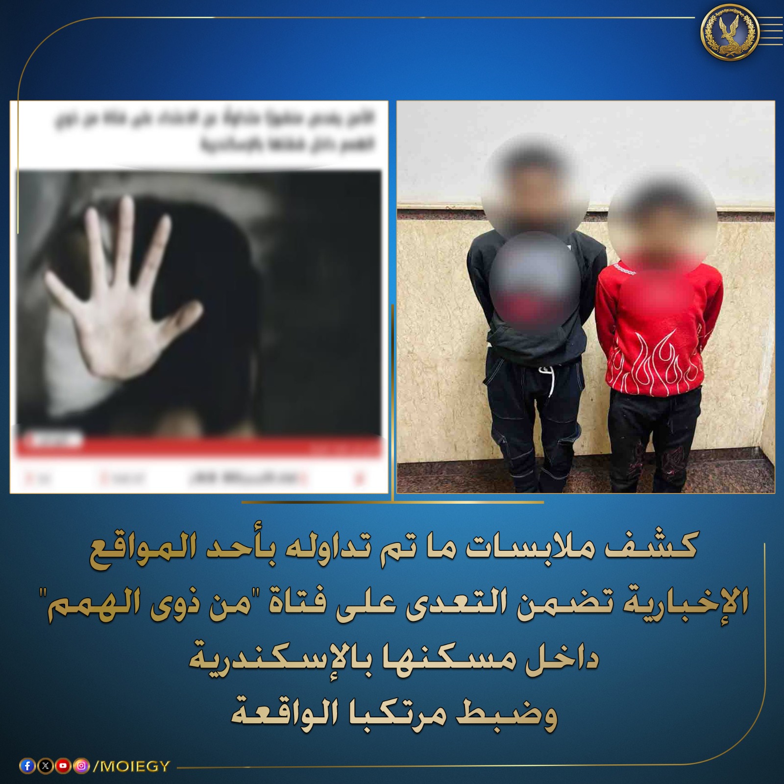 القانون يحمي ذوي الهمم: ضبط متهمين بالتعدي على طالبة من ذوي الإعاقة داخل مسكنها بالإسكندرية