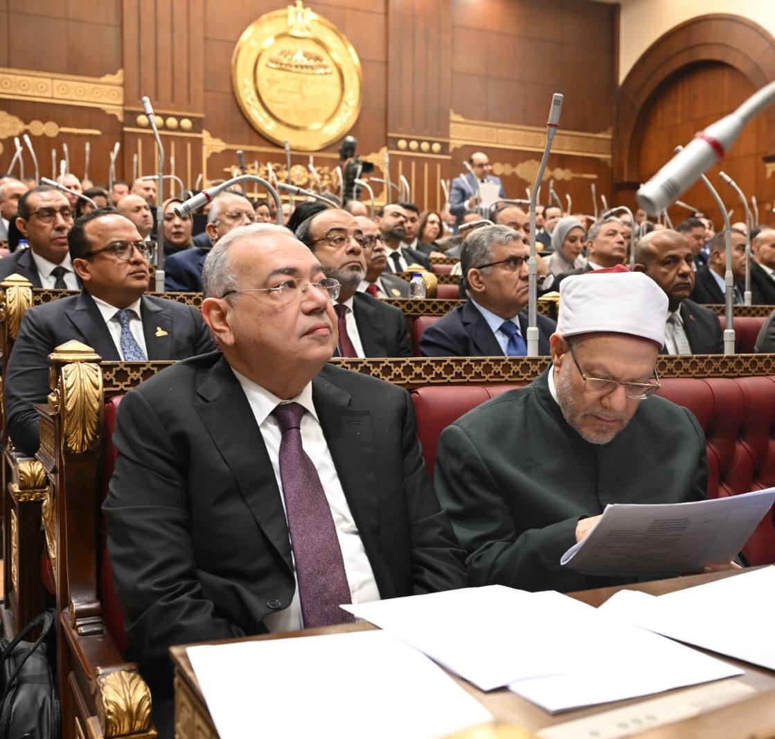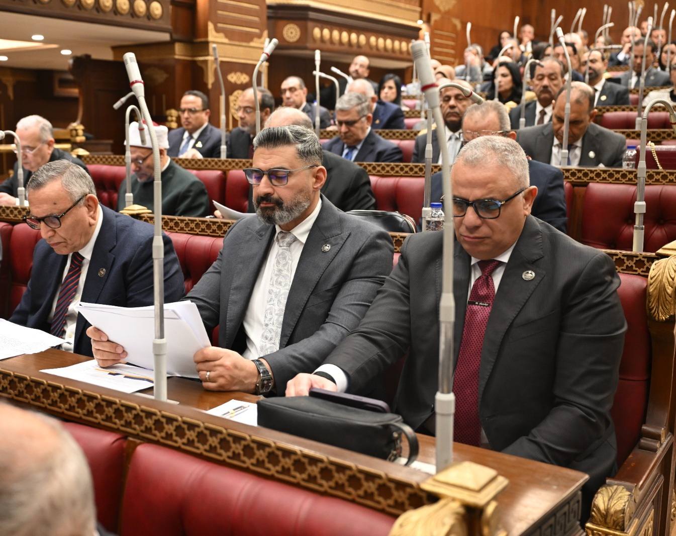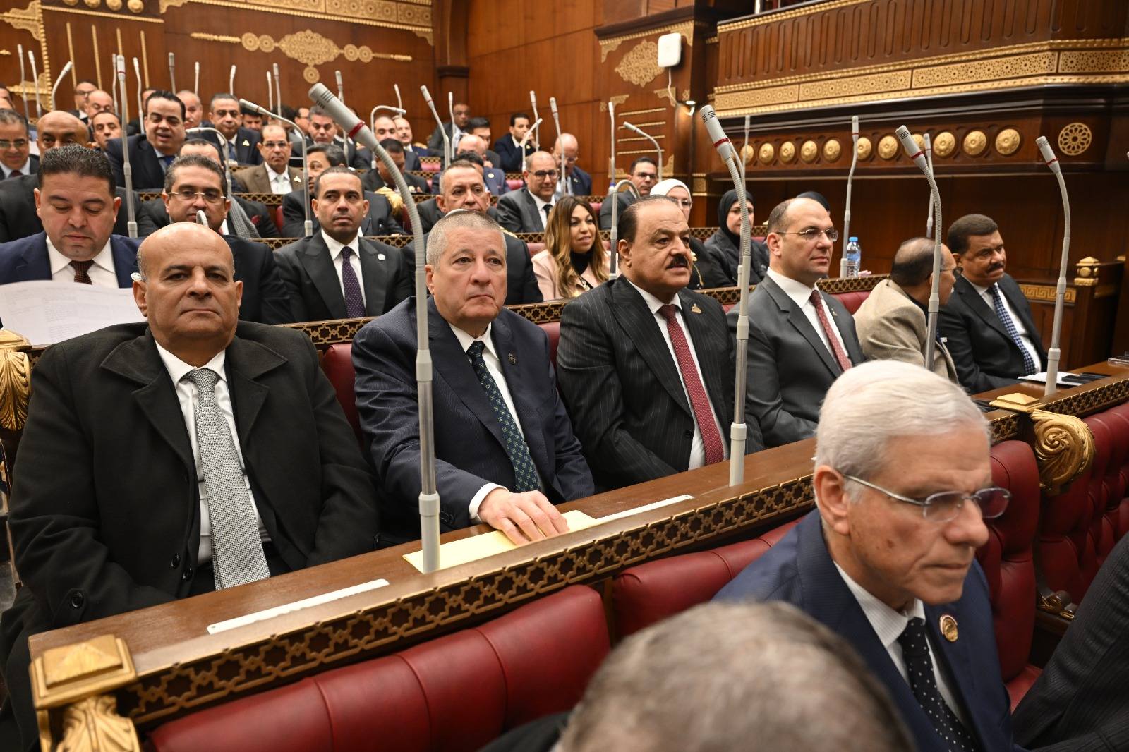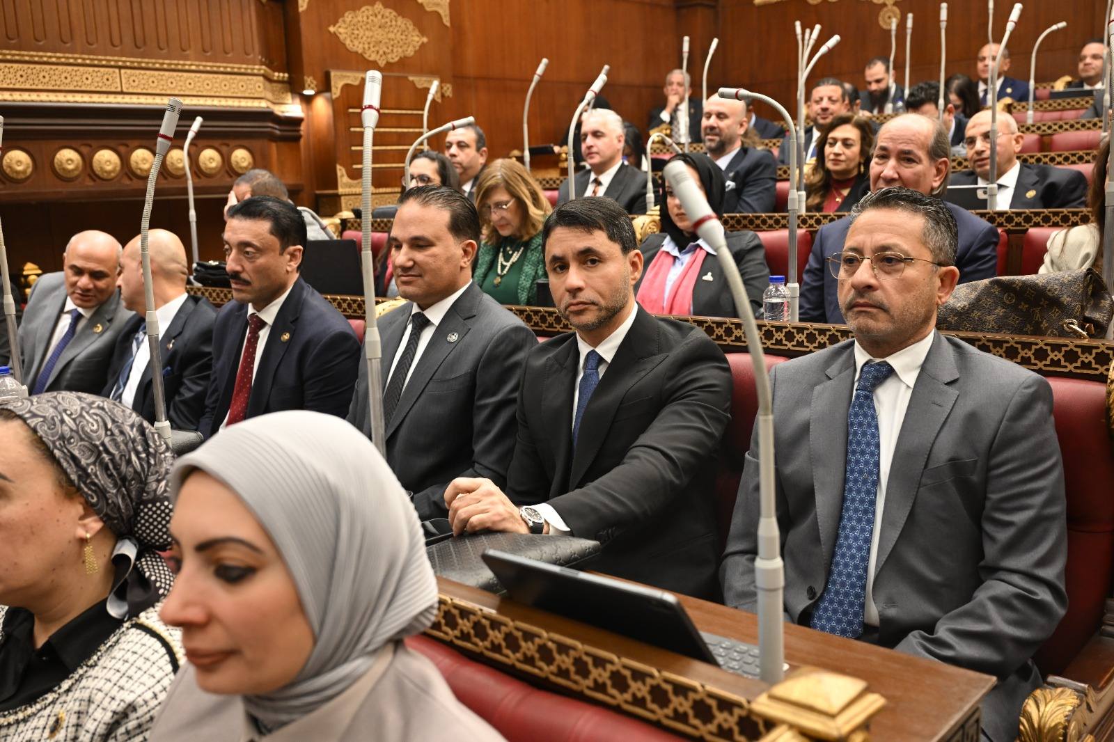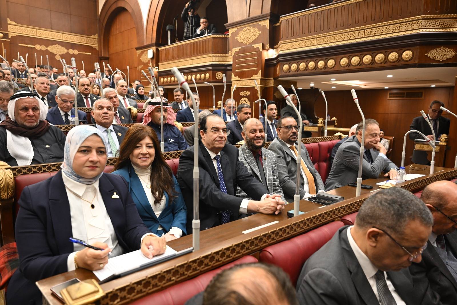 بحضور المستشار محمود فوزي وزير المجالس النيابية والقانونية والتواصل السياسي، و أحمد كجوك وزير المالية.