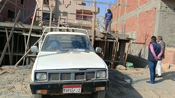 رصد أعمال تسليح سقف بأحد المباني بمنطقة 2 ب.