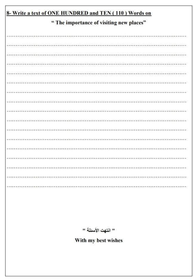 نموذج امتحان اللغة الإنجليزية للشهادة الإعدادية