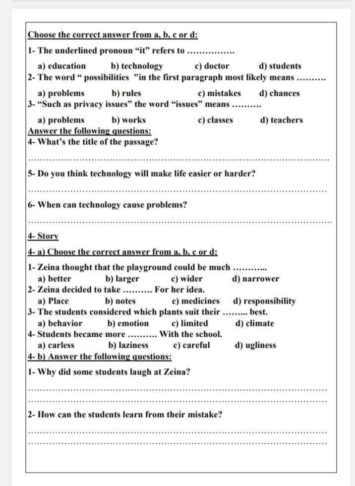 1- Choose the correct answer from a, b, c or d: