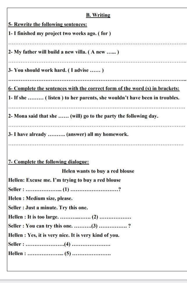 - نموذج امتحان اللغة الإنجليزية للشهادة الإعدادية