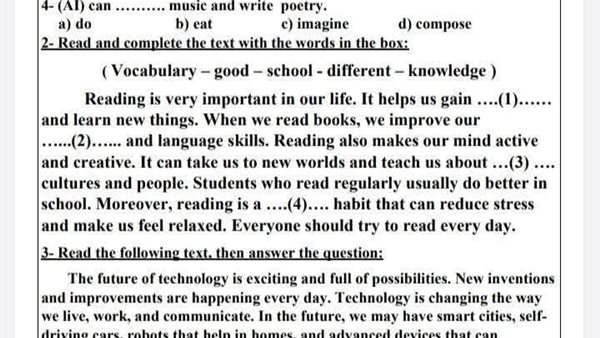 - نموذج امتحان اللغة الإنجليزية للشهادة الإعدادية بالجيزة