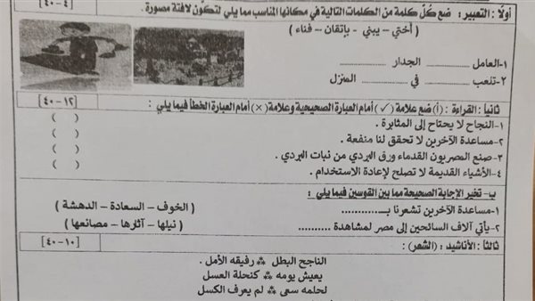 تداول عدد من معلمي وأولياء الأمور عبر مواقع التواصل الاجتماعي نماذج امتحان اللغة العربية للصف الثالث الابتدائي للفصل الدراسي الأول، في إطار متابعة الاستعدادات النهائية لامتحانات صفوف النقل.