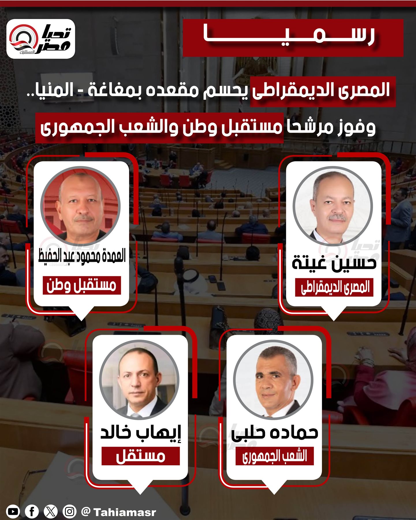 فوز مرشحي المصري الديمقراطي ومستقبل وطن والشعب الجمهوري في مغاغة بالمنيا