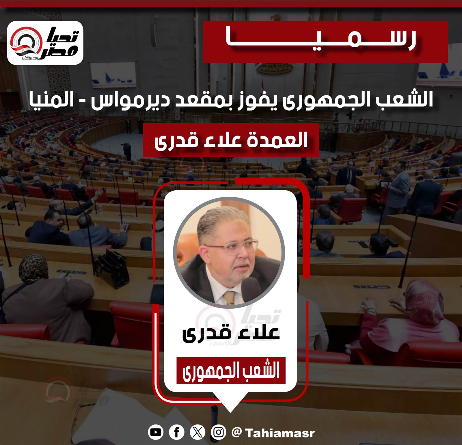 أسفرت النتائج الرسمية لجولة الإعادة في انتخابات مجلس النواب عن فوز العميد علاء قدري، مرشح حزب الشعب الجمهوري، بمقعد دائرة ديرمواس بمحافظة المنيا، بعد منافسة انتخابية شهدتها الدائرة ضمن الدوائر التي أعيدت بها العملية الانتخابية.