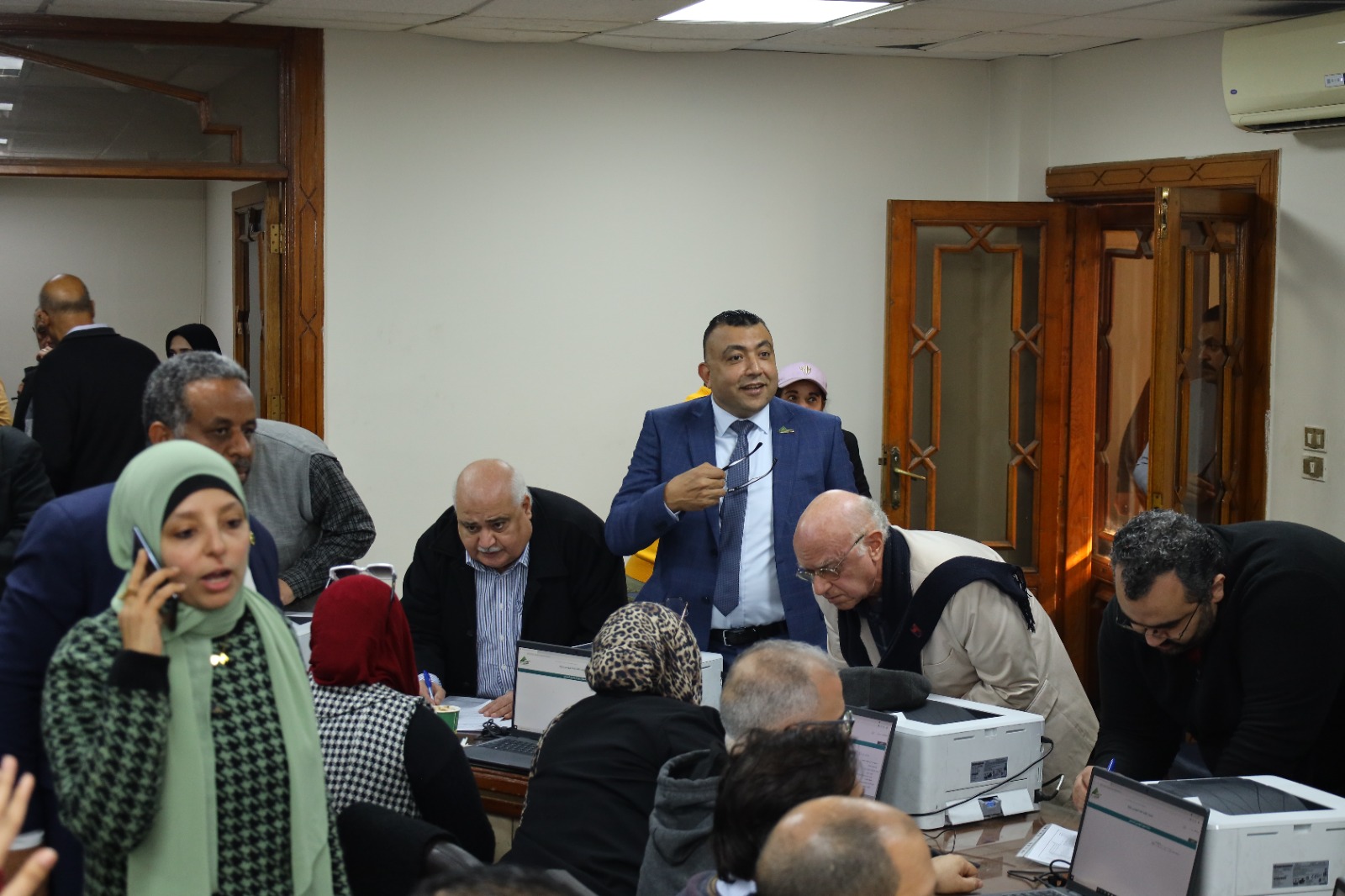 وأوضح المهندس السيد حسن أن اللجنة حرصت على التواجد منذ الصباح الباكر للتأكد من جاهزية النقابة لاستقبال المرشحين والبدء في تسجيل طلباتهم في تمام الساعة العاشرة صباحًا طبقًا لصحيح القانون، مشيرًا إلى أنه تم عقد اجتماع عبر تطبيق "زووم" مع كافة رؤساء اللجان الفرعية للتأكد من جاهزيتها والحرص على استقبال المهندسين بالصورة التي تليق بهم.