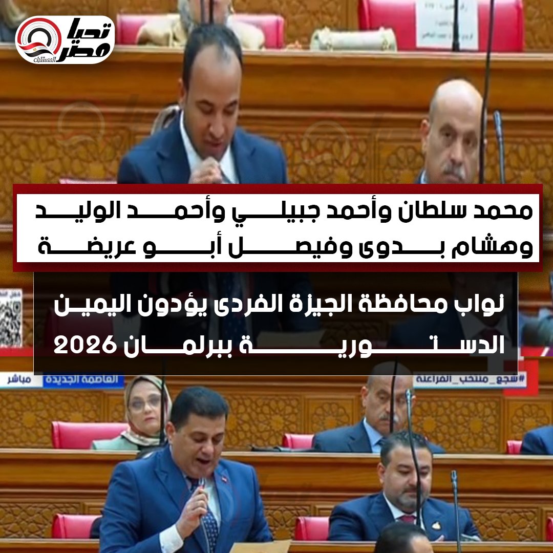 محمد سلطان وأحمد جبيلي وأحمد الوليد وهشام بدوى وفيصل أبو عريضة.. نواب محافظة الجيزة الفردى يؤدون اليمين الدستورية ببرلمان 2026 (صور)