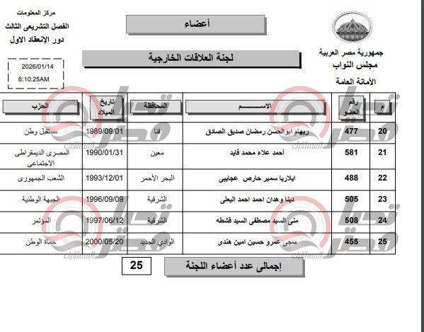 وبذلك يبلغ إجمالي عدد أعضاء اللجنة 25 نائبًا، من مختلف الأحزاب والانتماءات السياسية، بما يعكس تنوعًا سياسيًا ومهنيًا واسعًا داخل واحدة من أهم اللجان النوعية في البرلمان.