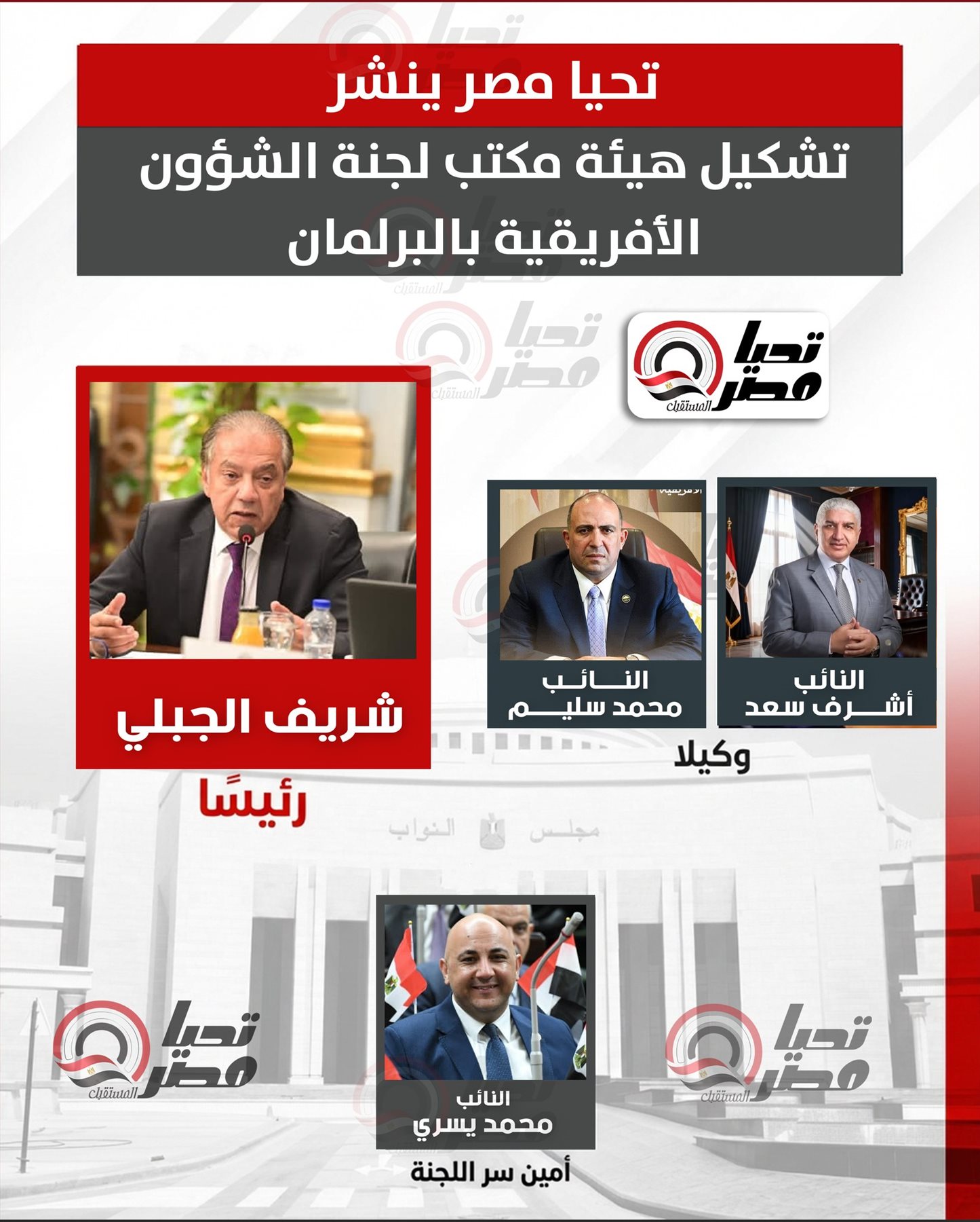 برئاسة النائب شريف الجبلي.. تحيا مصر ينشر تشكيل هيئة مكتب لجنة الشئون الأفريقية بمجلس النواب 2026