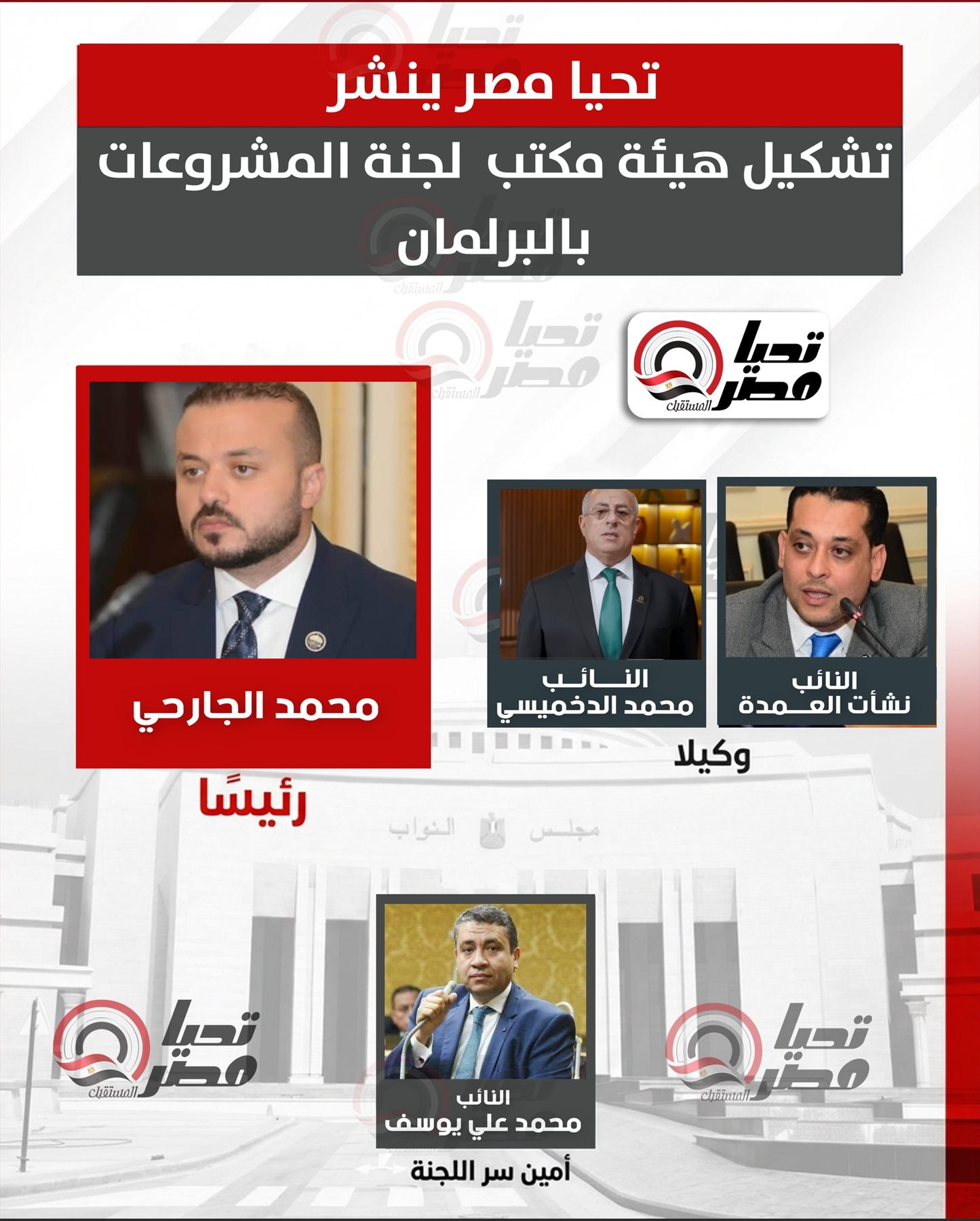 برئاسة النائب محمد الجارحي.. تحيا مصر ينشر تشكيل هيئة مكتب لجنة المشروعات الصغيرة ومتناهية الصغر بمجلس النواب
