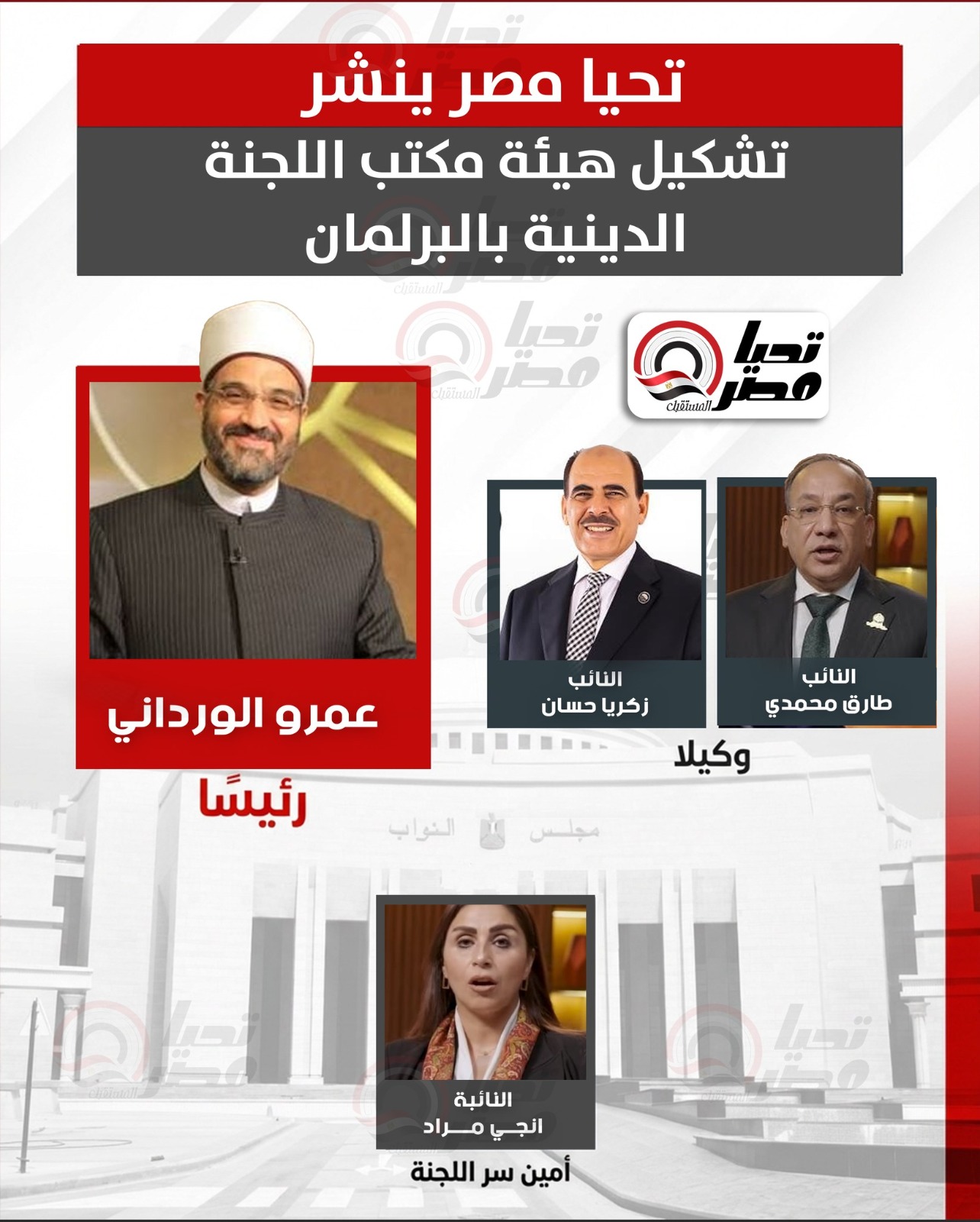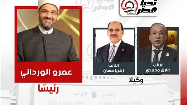 عمرو مصطفى حسنين الورداني رئيسا للجنة الشئون الدينية والأوقاف بمجلس النواب