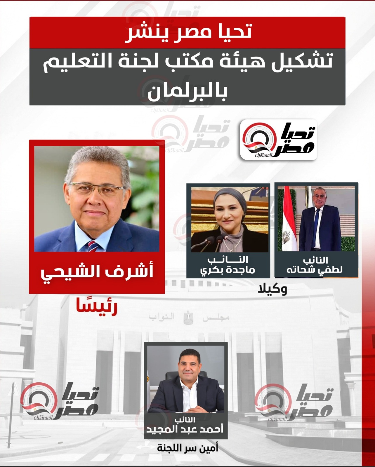 أسفرت الانتخابات عن فوز النائب أشرف محمد عبد الحميد الشيحي برئاسة لجنة التعليم والبحث العلمي، لتولي قيادة أعمال اللجنة ومتابعة الملفات التشريعية والرقابية المتعلقة بالسياسات التعليمية، ومتابعة برامج البحث العلمي وتطوير منظومة التعليم في جميع مراحله.
