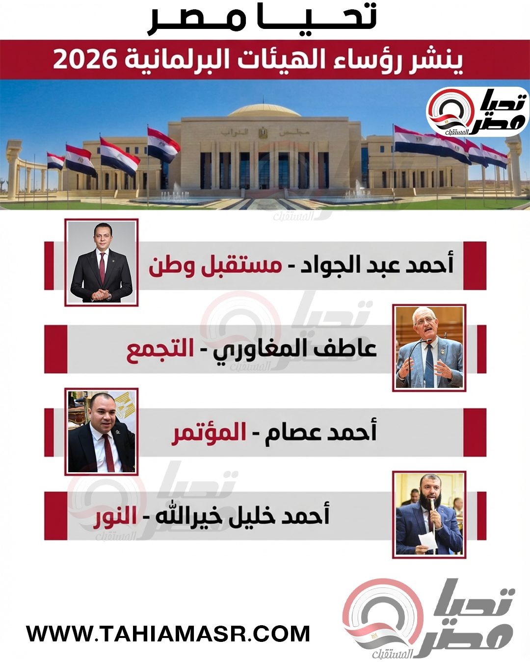 تحيا مصر ينشر أسماء رؤساء الهيئات البرلمانية لعام 2026