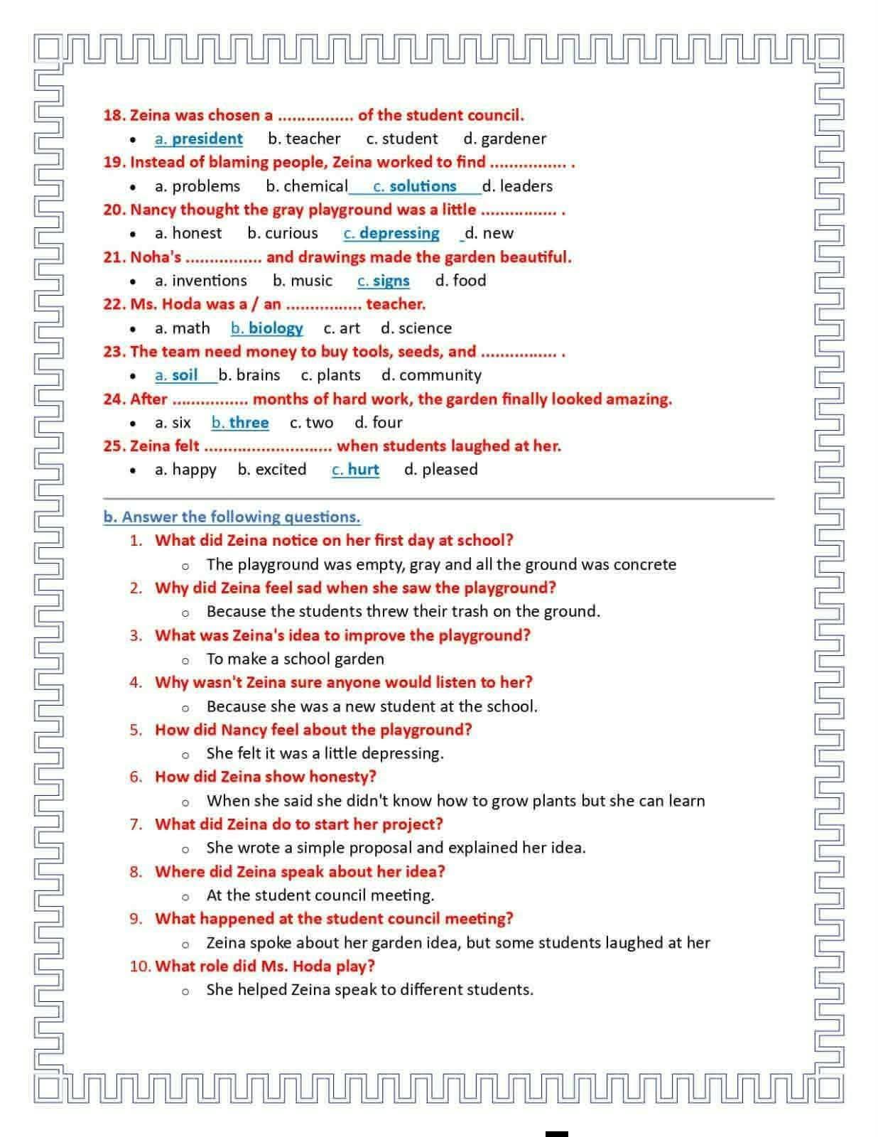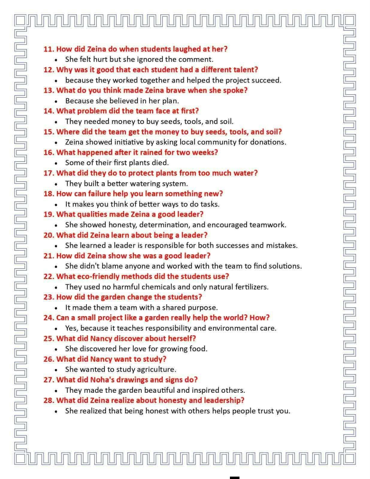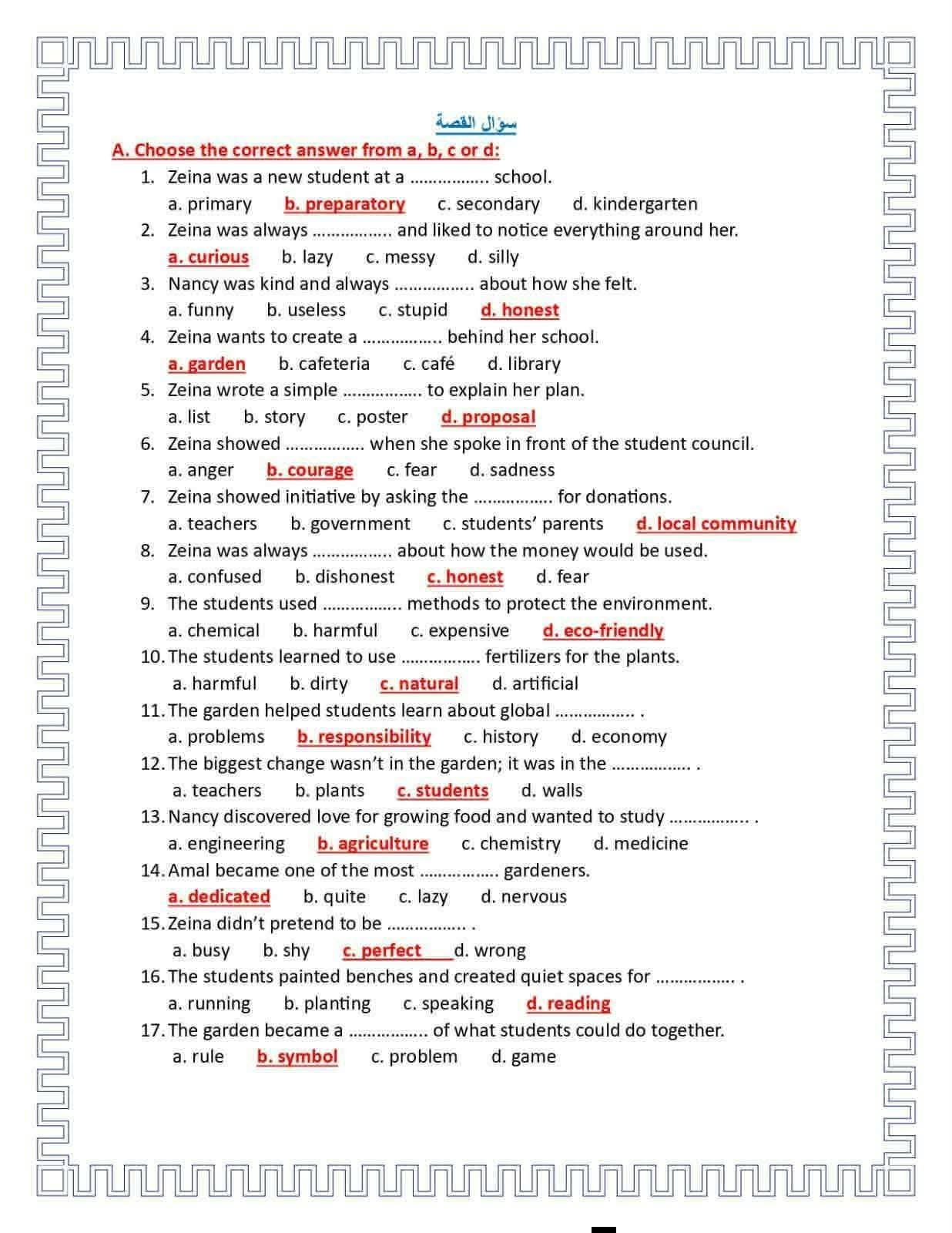 أسئلة وإجابات قصة اللغة الإنجليزية للصف الثالث الإعدادي
